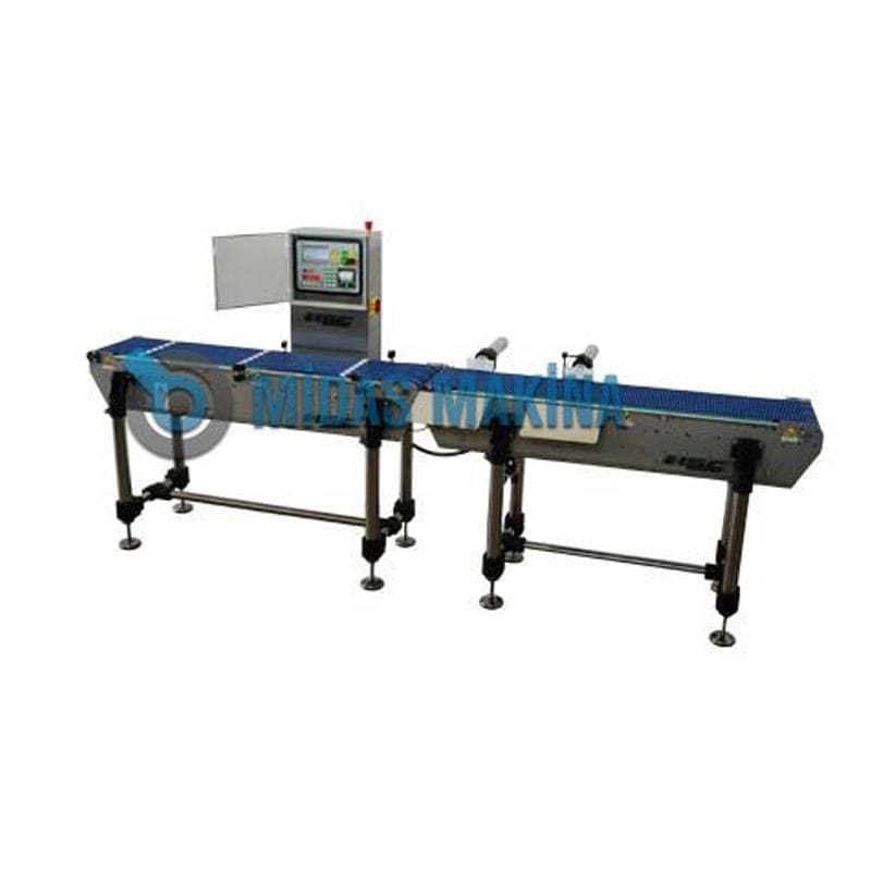 Ağırlık Kontrol Checkweigher Sistemi: Midas Makina, tarafından üretilen Checkweigher Sistemi yüksek tartım hassasitiyle kusursuz kullanım kolaylığı sağlamaktadır. İstenen ağırlığa ve ürüne göre imalatı yapılmaktadır. Hammadeler, paketlenmeye hazır ve paketlenmiş ürünlerin tartım kontrolünü gerçekleştirir. Bunun yanısıra OEM metal dedektörleriylede entagrasyon sağlamaktadır. Opsiyonel olarak ürün ayırma sistemi dahil edilebilir.